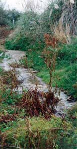 These photos of Marin Creek were taken by Baykeeper 11/6/98. They were used by District Attorney Jeff Holtzman in the prosecution of the Petaluma Mushroom Farm in Superior Court. Shown are Marin Creek (dry) upstream of the Farm, the discharge pipe from the Farm directly into the creek, and the creek downstream from the Farm, running with Diazinon contaminated Mushroom Farm waste.